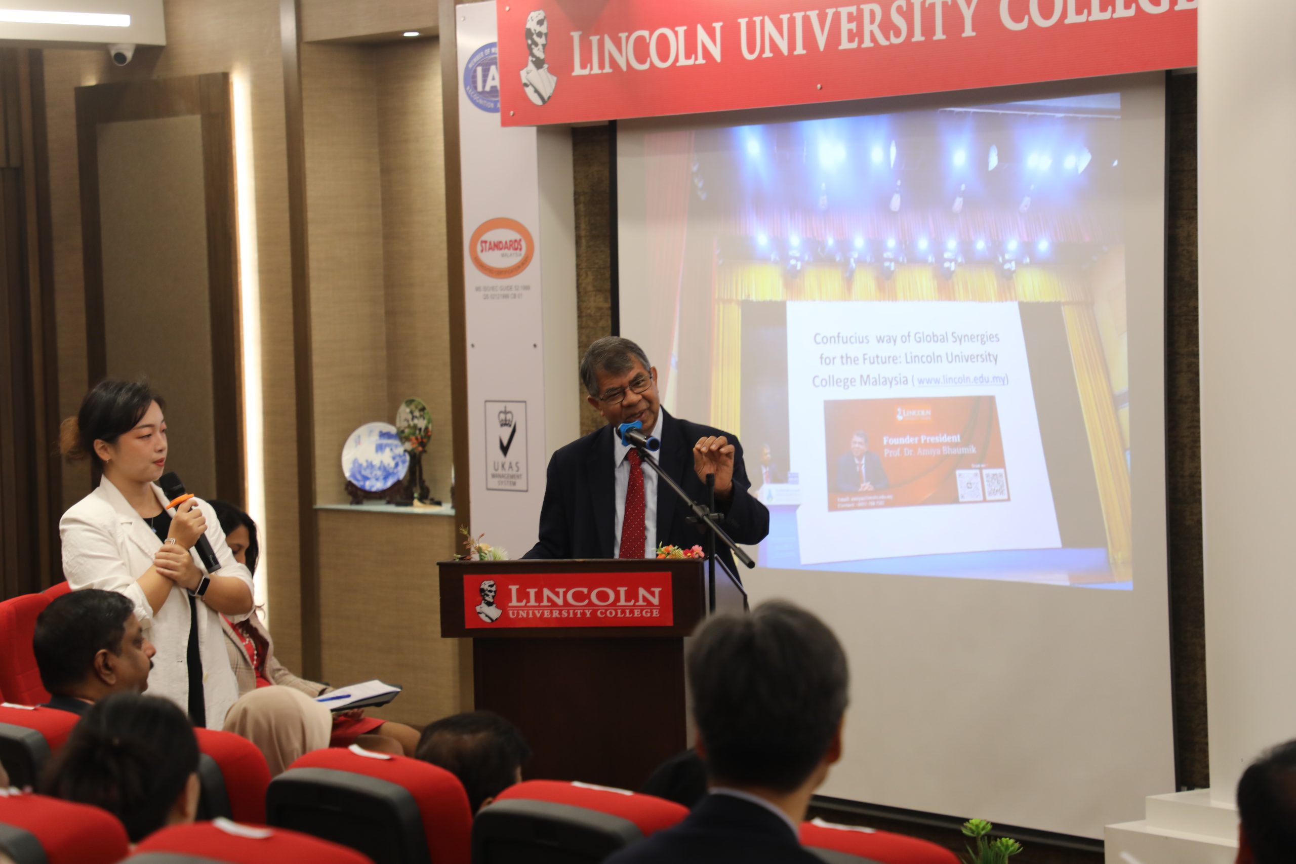 From LUC, Prof. Dr. Amiya Bhaumik, Founder & President; Datuk Dr. Hjh. Bibi Florina Abdullah, Pro Chancellor; Dato (Amb) Dr. Mohd Yusof bin A. Bakar, CEO & Vice Chancellor; Prof. Datin Dr. Hafizah Che Hassan, Deputy Vice Chancellor (Academic); Mohd Nikmat bin Wahib, Registrar; Prof. Dr. Sandeep Poddar, Deputy Vice Chancellor (Research & Innovation) and Prof. Dr. Abhijit Ghosh, Dean, Faculty of Business were present.